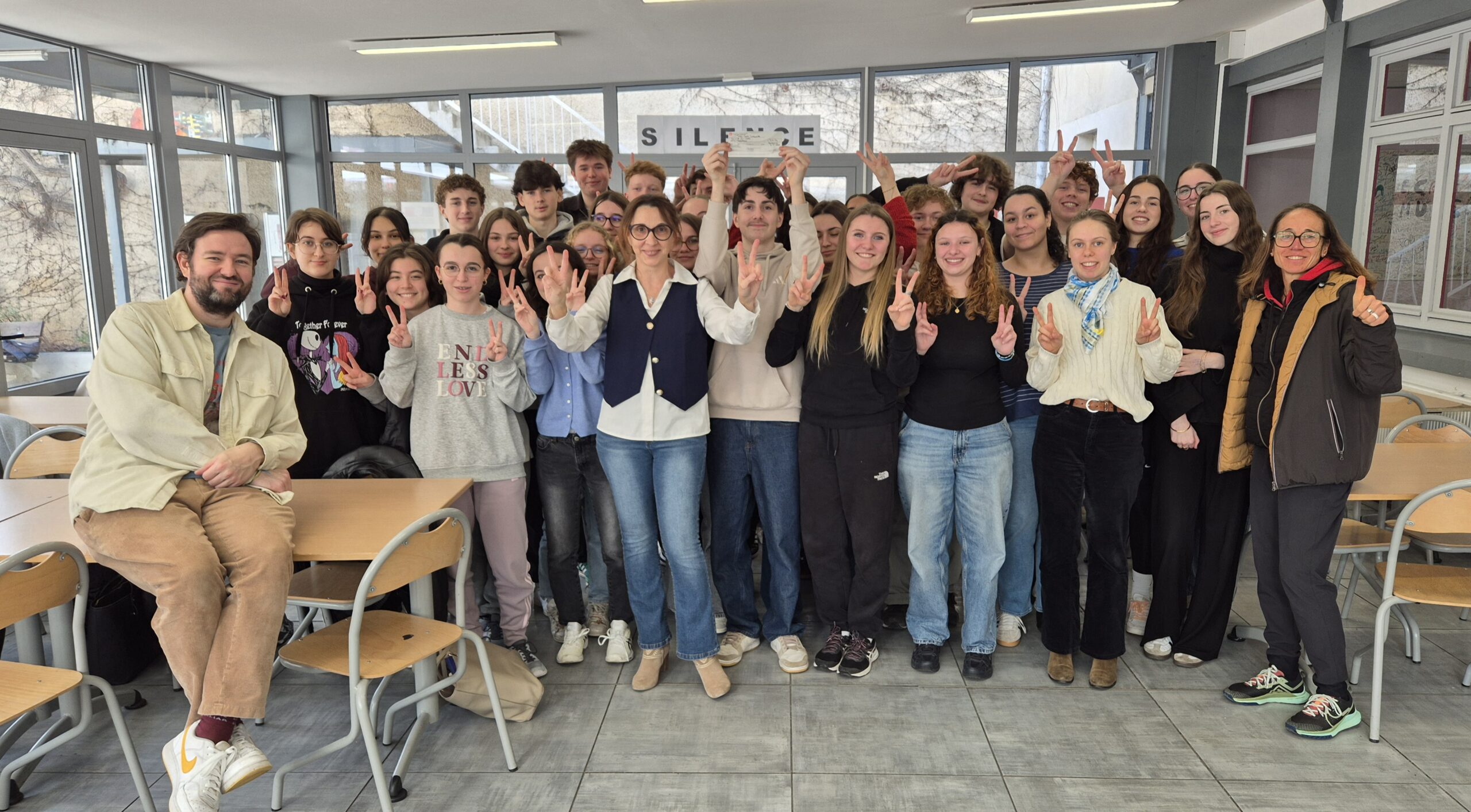 Remise de chèques solidaires par les élèves. Les élèves de terminale AEPA, et TG4 se sont pleinement engagés dans des actions solidaires au cours de l’année, permettant la remise de deux chèques à des associations. Un chèque de 352,74 € a été remis à l’AFM-Téléthon, suite aux actions menées dans le cadre du Téléthon par la classe de TG4. Un second chèque de 411,30 € a été remis à l’association Il était une fois les Rooses, dans le cadre d’Octobre Rose, grâce à l’engagement des élèves de terminale AEPA et TG4. Ces initiatives témoignent de l’implication des élèves et de leur engagement en faveur de la solidarité et du partage. Comme l’a rappelé Sœur Emmanuelle : « Sans partage, sans solidarité, on ne peut faire progresser l’Humanité. »