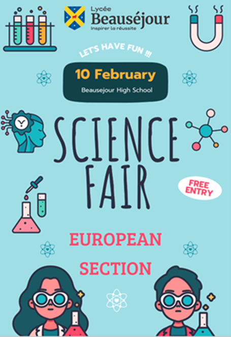 Le mardi 10 février, les 55 élèves de première générale de la section européenne anglais ont participé à une Science Fair (Fête de la science) placée sous le signe du partage et de l’ouverture internationale.